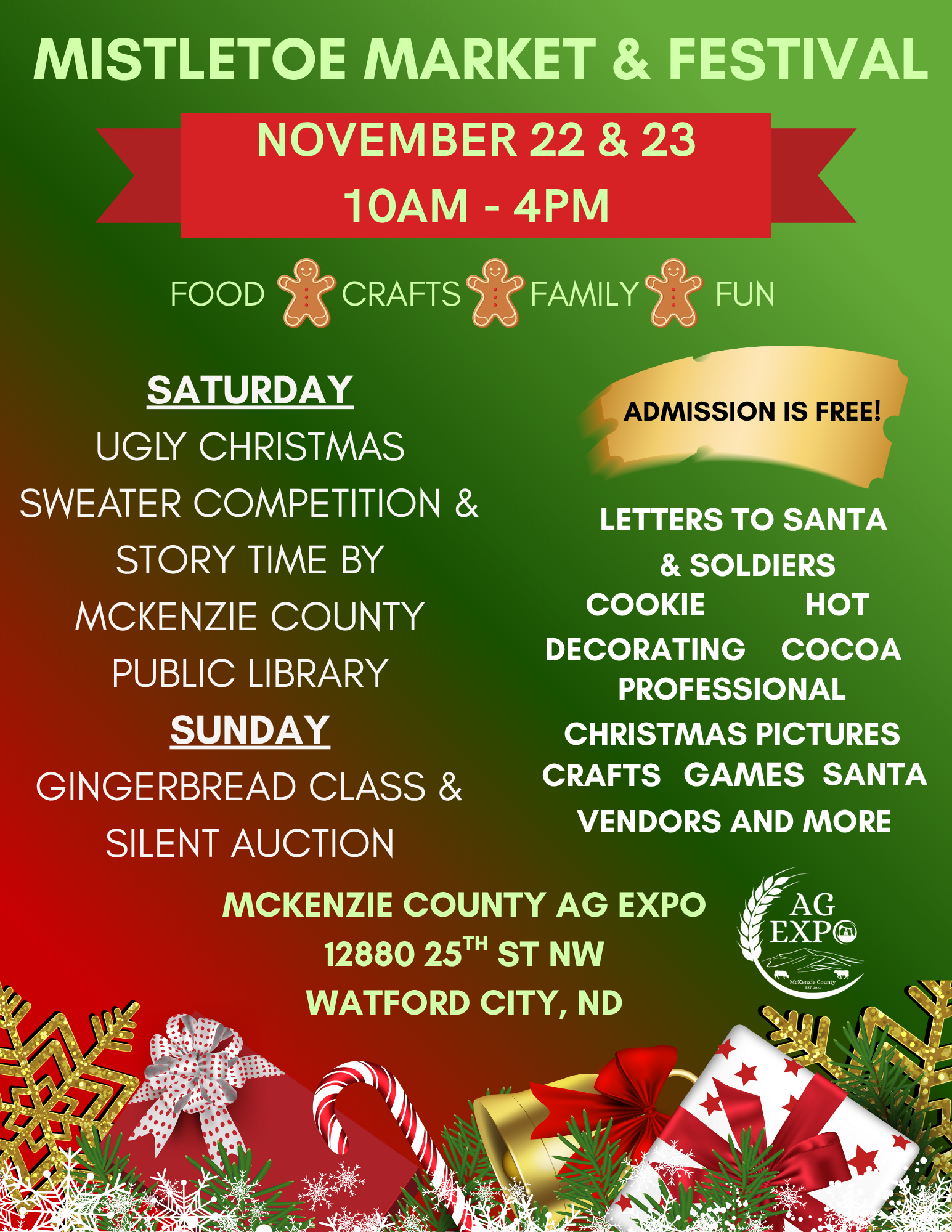 Join us at the Ag Expo for our Mistletoe Market & Festival. Fun for all ages with activities, games and shopping. Admission is FREE.